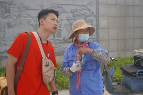 随后,实践团成员对孝妇河的环卫工人进行采访。环卫工人表示,因近期降雨带来的垃圾等,目前孝妇河湿地公园在清理优化中,他们通过采用捞淤船进行河面收集、固定岸边地点集中处理以及水枪冲洗等工作方式查看水体表面的清洁度,清理河面的烂枝杆、河苔、漂浮垃圾,减少湿地公园水体污染,维护公园环境。