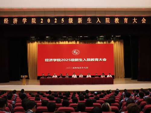 (据经济学院报道)9月18日下午,经济学院在西校区大学生艺术中心礼堂隆重举行2025级新生入院教育大会。学院领导班子成员、各系主任、各科室负责人、新生班主任、全体辅导员及2025级586名本科生和80名研究生共同参会。大会由学院党委副书记戴洁主持。