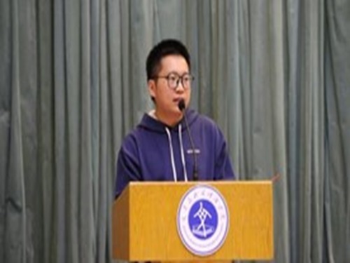 校友代表、“文暖”奖学金发起人田百乐发言。他结合大学经历向新生分享自己的心得:一是纠正“上大学就轻松”的认知偏差,强调大学应是“有负重感、有方向感”的奋斗阶段;二是做到勤学、拓学与践学相结合,既要扎实专业基础,也要拓展跨领域知识,积极参与实习实践,探索个人兴趣与方向;三是加强生涯规划,提升独立思考能力,树立“爱学习、爱学校、爱国家”的价值观,善用校院资源丰富阅历、积累成长。