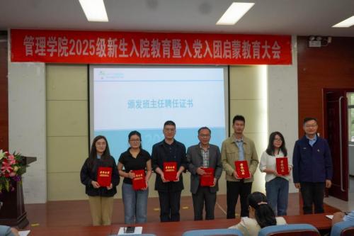 本次新生入院教育大会的成功举办,标志着我院2025级新生大学生活的正式启航。大会通过系统全面的入院教育和富有深意的党团启蒙,为新生们描绘了清晰的大学生涯蓝图,指明了成长成才的方向。相信全体新生必将秉承“厚德博学、笃行至善”的校训精神,以饱满的热情投身学习实践,在管理学院这片沃土上茁壮成长,为实现人生理想奠定坚实基础。