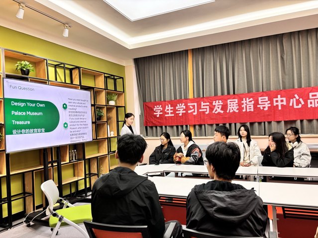 10月23日下午,由学生学习与发展协会和学生国际交流协会联合举办的品牌活动之英语角在我校大学生事务中心103室举办。本次英语角活动邀请的嘉宾是来自学生国际交流协会的优秀学生代表郁叶。本次活动就“故宫文创”这一话题来谈传统文化的创新与发展。