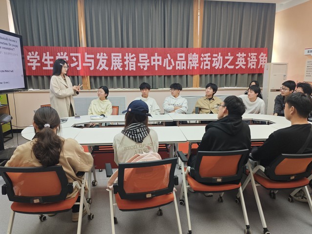 4月2日下午由学生学习与发展协会和学生国际交流协会联合举办的品牌活动之英语角在我校大学生事务中心103室举办。本次活动邀请的嘉宾是来自外国语学院的刘蕴婷。活动就“‘情绪价值’成为社交‘硬通货’,你在消费中会为‘情绪价值’买单吗?”这一话题展开讨论。
